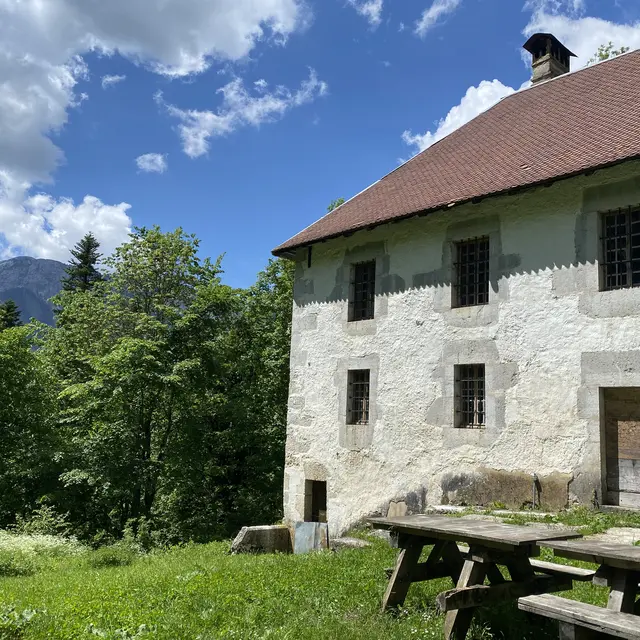 Continue on the road towards Saint Laurent du Pont, then the trail will be on your right, leading you to La Correrie, the Musée de la Grande Chartreuse.