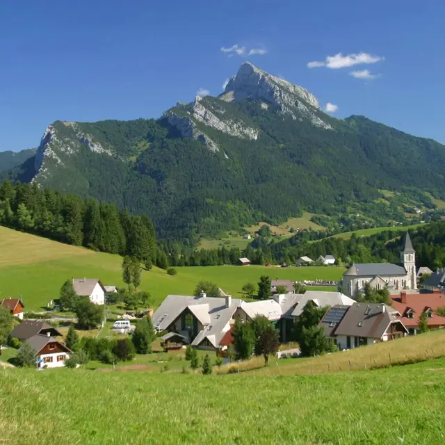 (2) At the sign for “Les Buissonnets,” turn left toward Cherlieu. Continue straight along the road that crosses the hamlet. Before the last houses, take the path on the left that climbs into the forest towards Le Clot via Chemin du Pissot. Ascend the path that follows the stream, and at the wood deposit area, cross the stream to take the left path into the forest. The path becomes a bit steeper as it turns left, moving away from the stream. At the top of the ascent, ignore the two paths that go to the right and take the flat path that crosses. The path descends to an intersection where you turn right (sign with a yellow arrow). You will exit the forest at the top of the slopes of the Egaux ski station. Enjoy the view of the village of Saint-Hugues-en-Chartreuse with the Grand Som in the background. You will re-enter the forest at Le Clot.