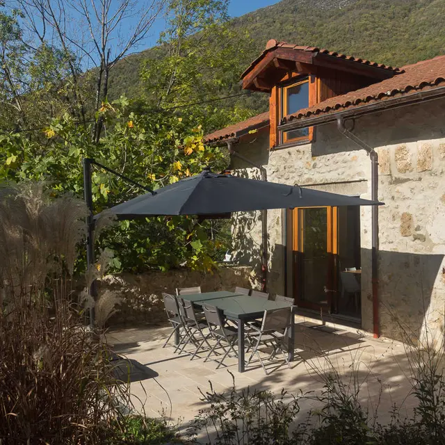 Beautiful 19th century stone house completely renovated, located in a small hamlet in the Chartreuse Regional Natural Park. On the ground floor living room-kitchen, lounge, flat screen TV, bedroom 1 (1 double bed), shower room, wc, upstairs play area & tv, bedroom 2 (1 double bed, shower water and private toilet), Bedroom 3 (2 single beds. Shower room and private toilet), Large terrace with garden furniture, garden with trees and flowers, parking. Nearby: Caves de la Chartreuse, resort of Sappey en Chartreuse and Col de Porte, hiking trails, caves of Sassenage, Grenoble Olympic city: cable car, museums, performance halls, ice rink...