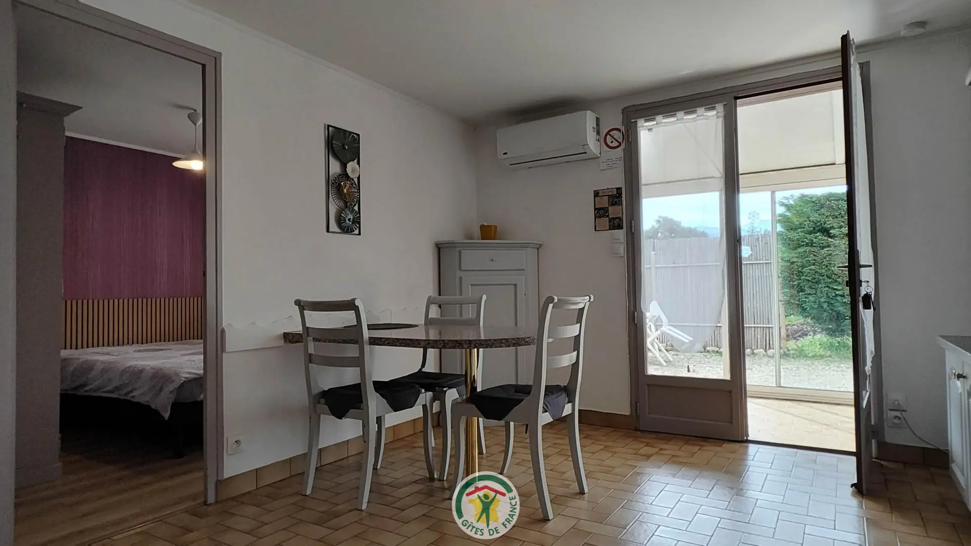 Small 33m² gîte on one level in a small village near Voiron and the Grenoble area. You will have a living room-kitchen (washing machine, oven, extractor, microwave, etc.) Bedroom 1 (1 double bed) Bedroom 2 (7m², single sofa bed), bathroom water-wc. Air conditioning, electric heating, flat screen TV & WIFI. Large veranda with garden furniture, courtyard. Shared parking with the owners.