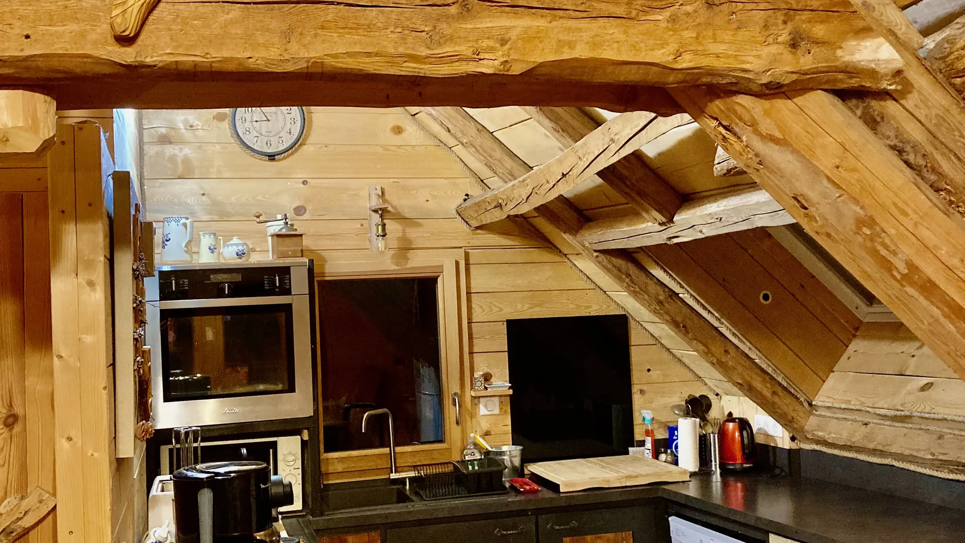 This barn, which we have converted into a home, is located in the heart of a typical, peaceful hamlet in the Chartreuse mountains, at an altitude of 1,000 meters. We chose to renovate it using wood from Chartreuse, keeping the exposed beams.