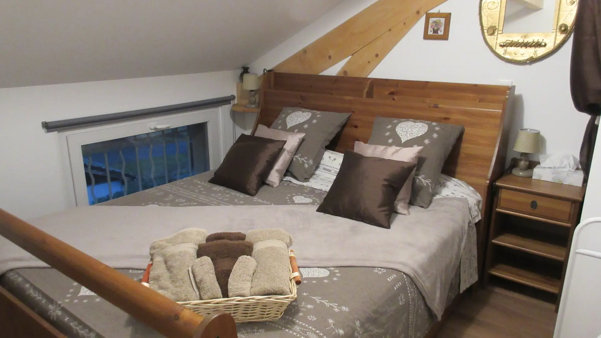 On the heights of Dullin, the Cimes du Lac are planted there facing the Montagne de l'Epine and overlook the Lac d'Aiguebelette from where you can admire the view. Perfectly suited for holidays between lake and mountain, discover the region of Lake Aiguebelette, its lake and mountain activities, its remarkable site and the purity of its waters. Dwelling house on 2 levels, gite in the owner's house with independent entrance, independent and enclosed garden, private parking (2 spaces). Games for children, summer kitchen, pool on the property. 1 step to access the house. On the ground floor: kitchen in the hallway, dining room, outdoor access to the fully opening veranda (gym / info point / dining area / children's games). On the 1st floor: lounge area on the mezzanine with desk, 1 separate toilet, 2 bedrooms (2 single beds 90x190 cm and 1 trundle bed 90x190 cm / 1 double bed 160x200 cm), small baby alcove with changing table and cot in wood (60x120 cm), bathroom (shower and wc). Fully enclosed and landscaped grounds. Wired internet connection. Possibility of table d'hôtes on request.