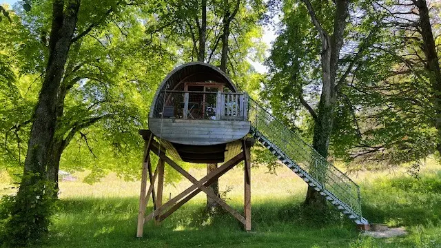 Step out of the ordinary for one or several lovely nights in one of those treehouses with nordic bath access. In a wooden cabin, at bird's eye level, you can relax and enjoy the incredible view from the valley and mountains surrounding you...
