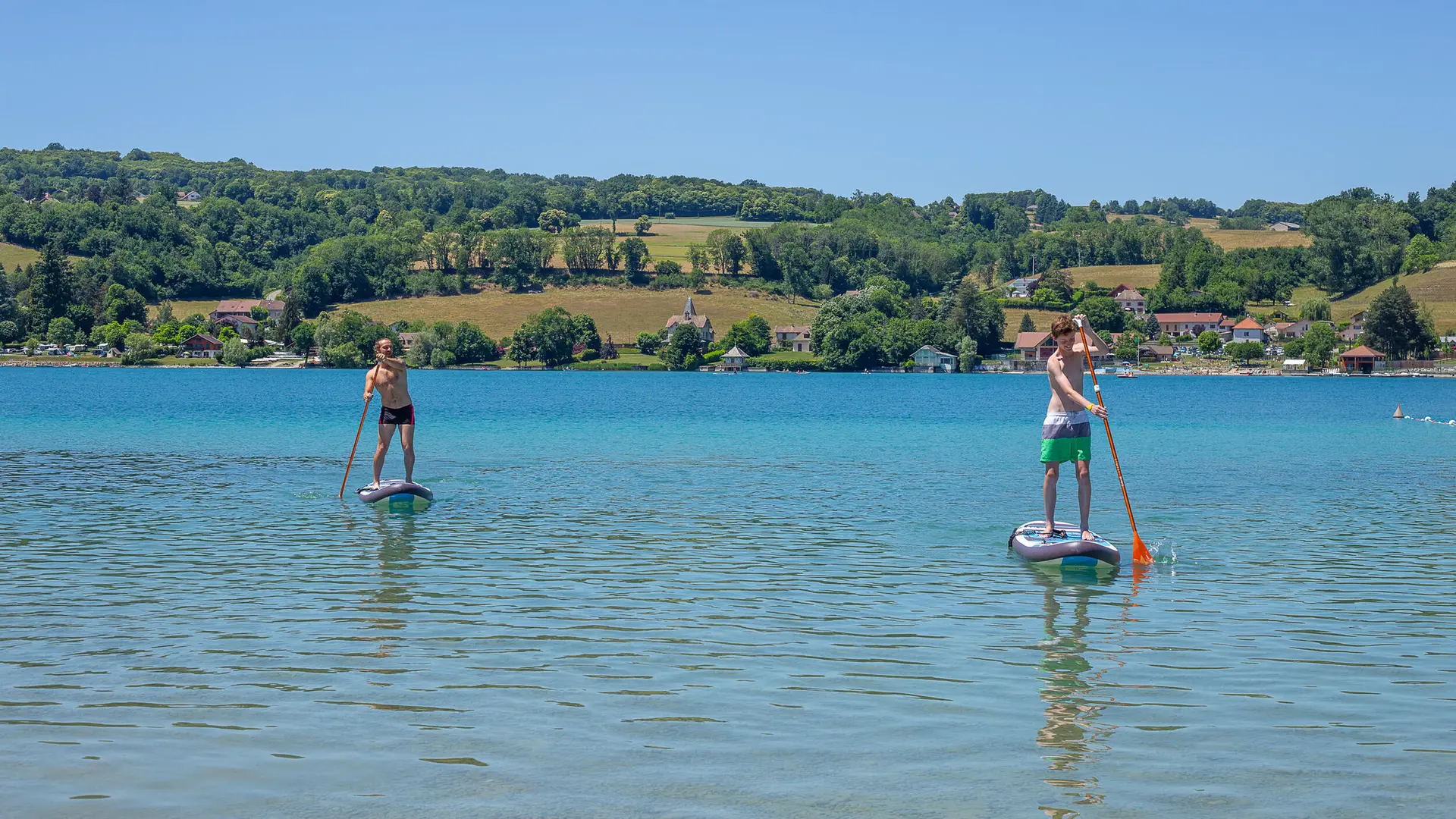 Vast beach of small pebbles and gently sloping grass, ideal for swimming in shallow water. Full sun all day. Beach volleyball court, pétanque, games for children. Barbecue prohibited.