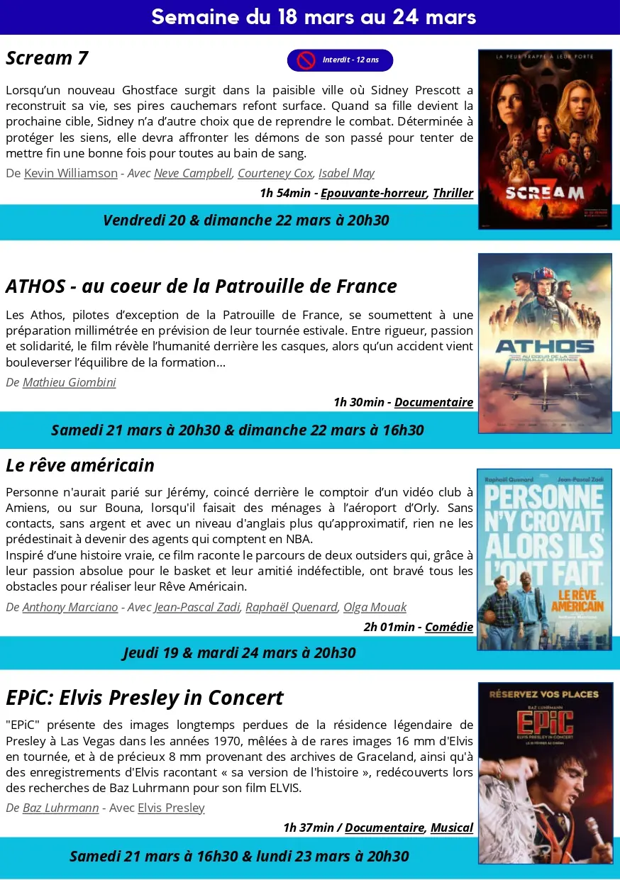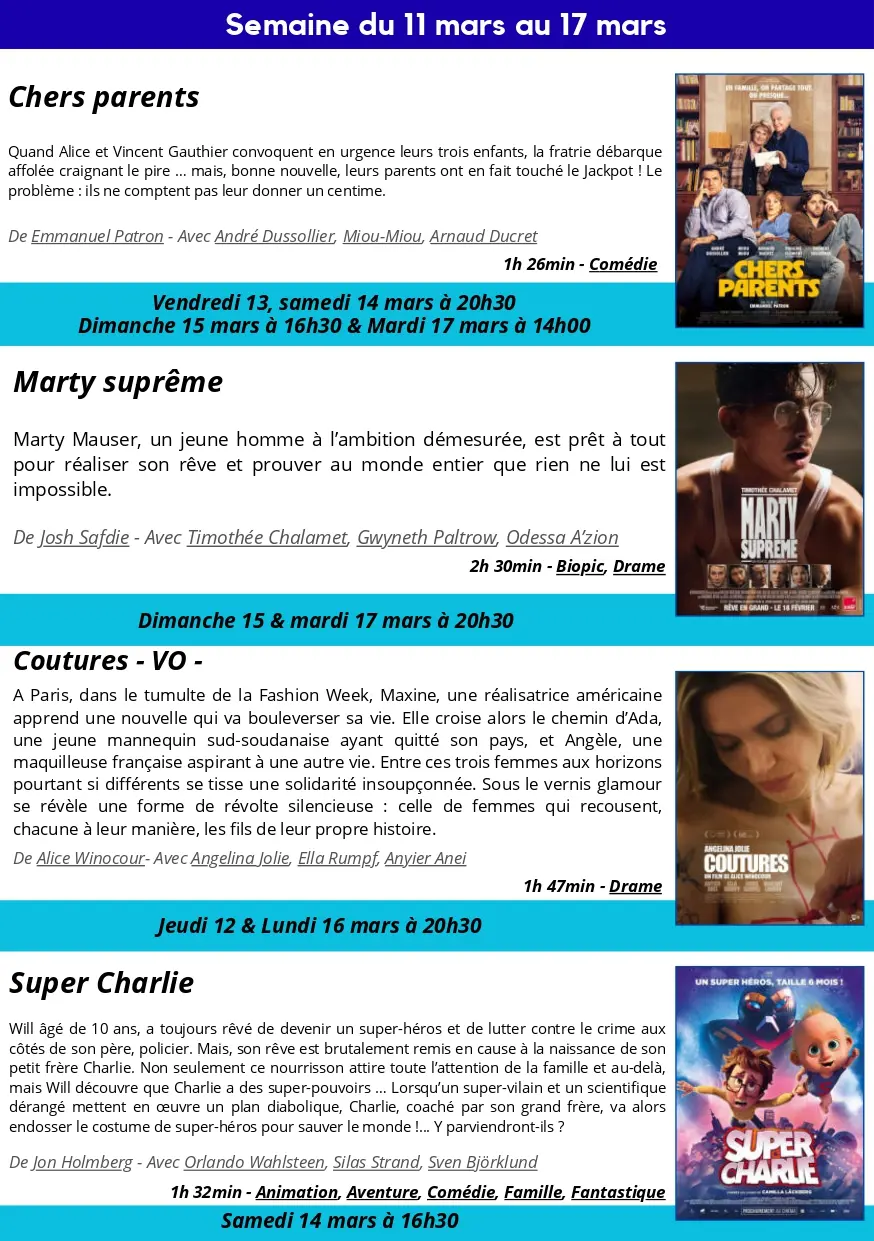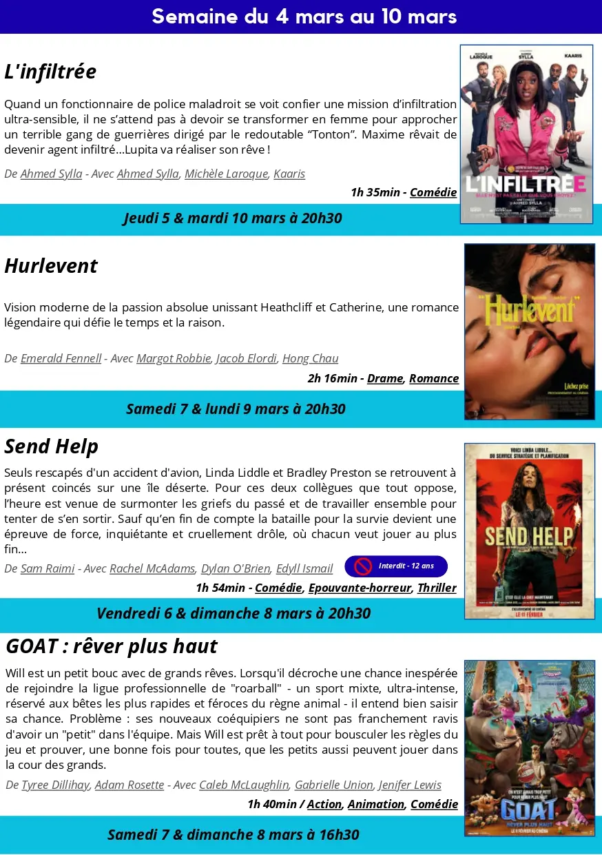 Programme du cinéma Le Montcelet du 4 au 24 mars
