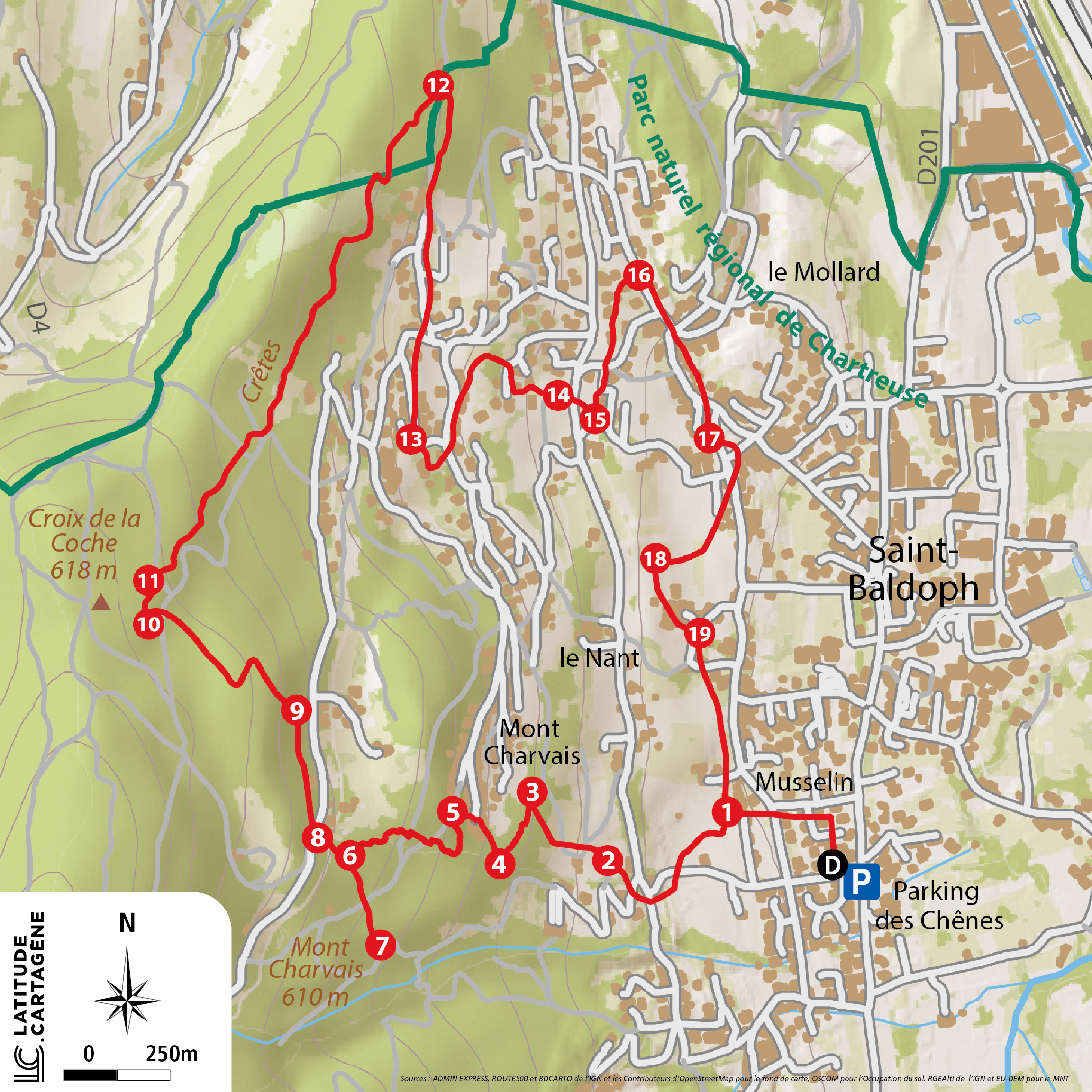 The path climbs up through the undergrowth, offering a fine view of the heights of Saint Baldoph and the Massif des Bauges to the right.