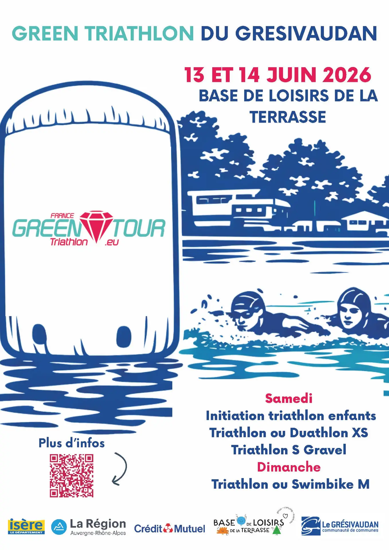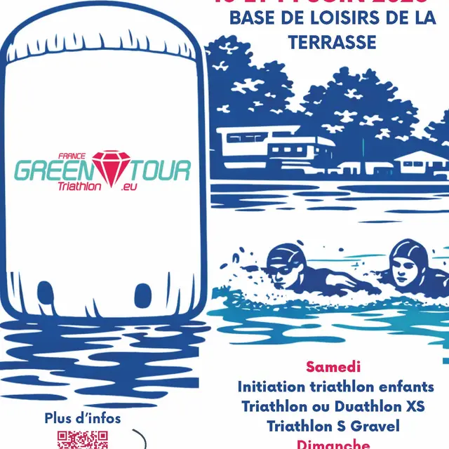13h00 à 15h30 : retraits dossards triathlon S en Gravel à l'espace accueil du village Green Tour Triathlon (situé sur la base de loisirs de la Terrasse)