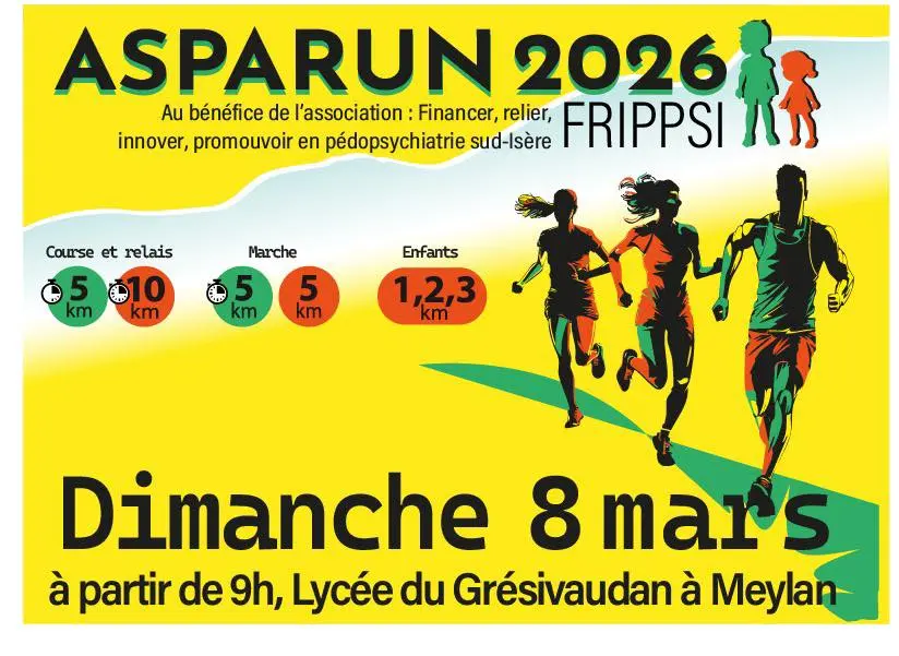 Cette année pour sa 15ème édition l'ASPARUN 2026 sera organisé le dimanche 8 mars 2026 au départ du Lycée du Grésivaudan de Meylan.