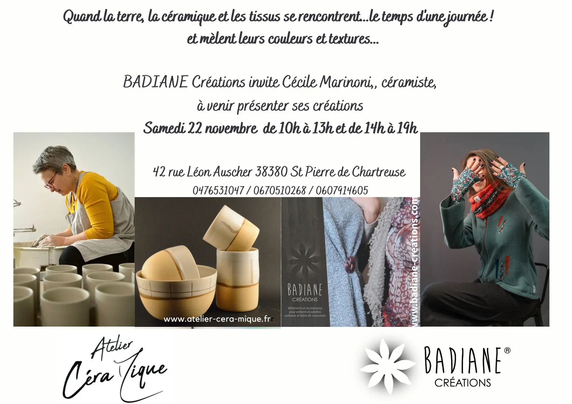 Badiane créations invite Cécile Marinoni, céramiste à venir présenter ses créations, pleins d'idées cadeaux pour les fêtes.