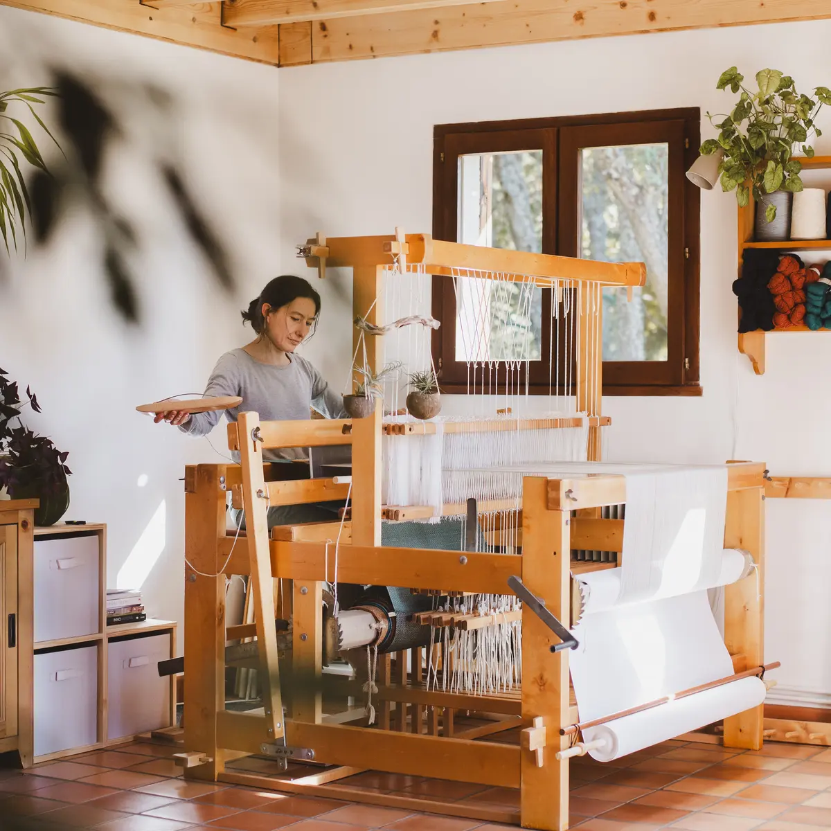 Bienvenue dans mon atelier à Sarcenas, près de Grenoble. Ici, loin de la production de masse, je tisse et couds à la main des pièces uniques alliant savoir-faire d’antan et touche contemporaine. Chaque création est le fruit d’un jeu de couleurs et de matières, conçue pour durer et traverser les saisons avec caractère.