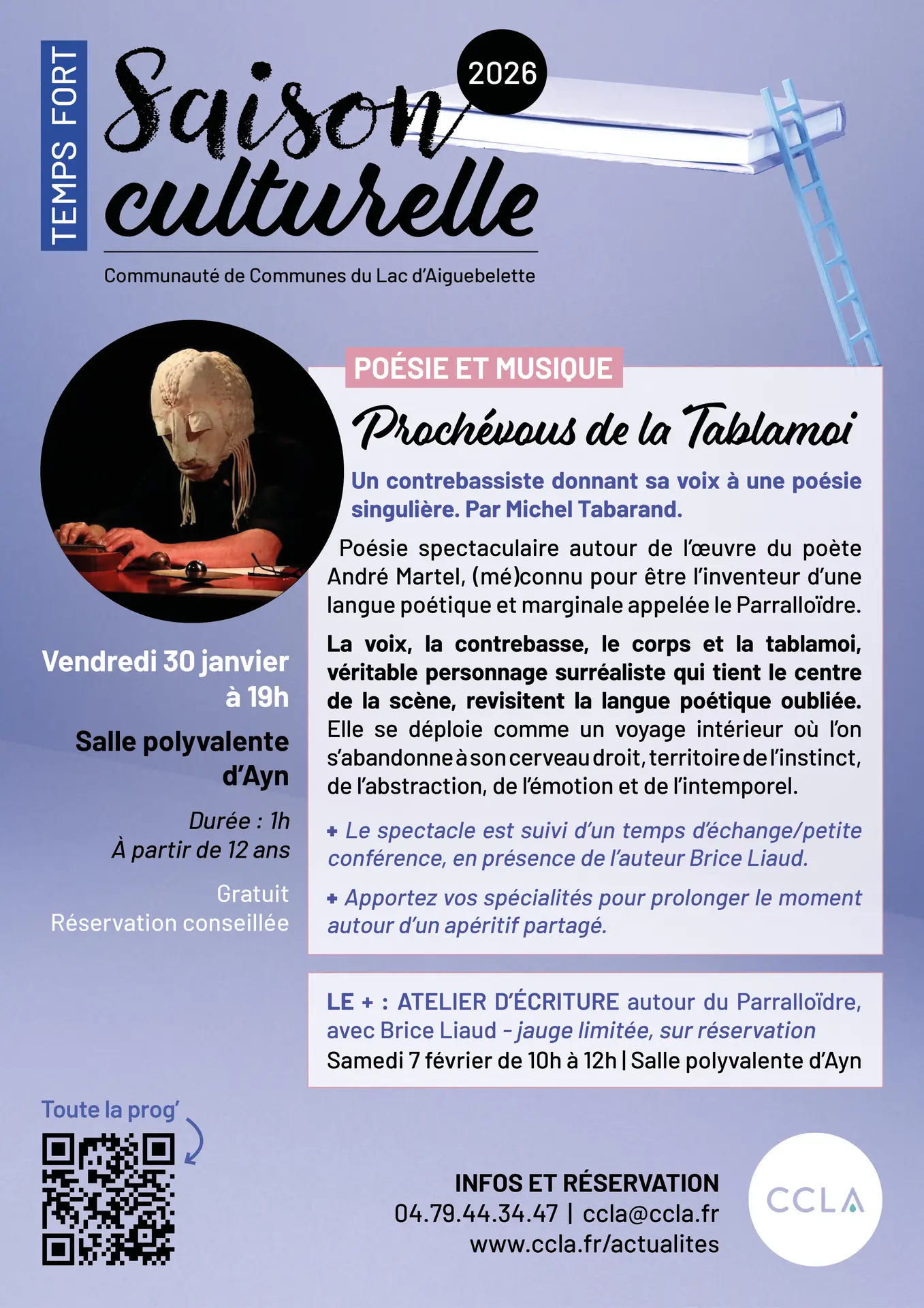 L'atelier est mené par l'auteur Brice Liaud, dans le cadre de la proclamation du spectacle "Prochévous de la Tablamoi" le vendredi 30 janvier à 19h à Ayn.