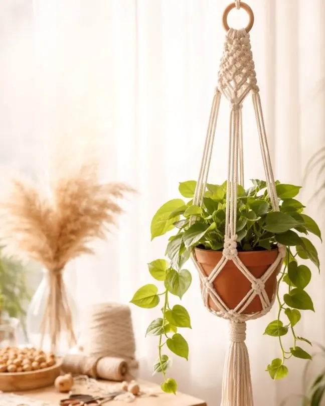Que vous soyez débutant.e ou initié.e, participez à cet atelier pour créer une suspension pour plante tout en découvrant le macramé. Une activité manuelle accessible et relaxante !