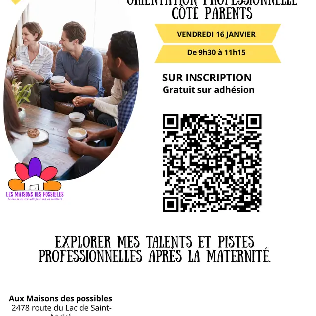 Cet atelier propose un espace pour réfléchir à votre parcours professionnel après la maternité. Vous pourrez identifier vos talents, explorer de nouvelles pistes, et envisager des projets qui correspondent à vos aspirations et à votre équilibre personnel. C’est un moment de réflexion et d’échanges pour vous aider à avancer sereinement dans vos choix professionnels.