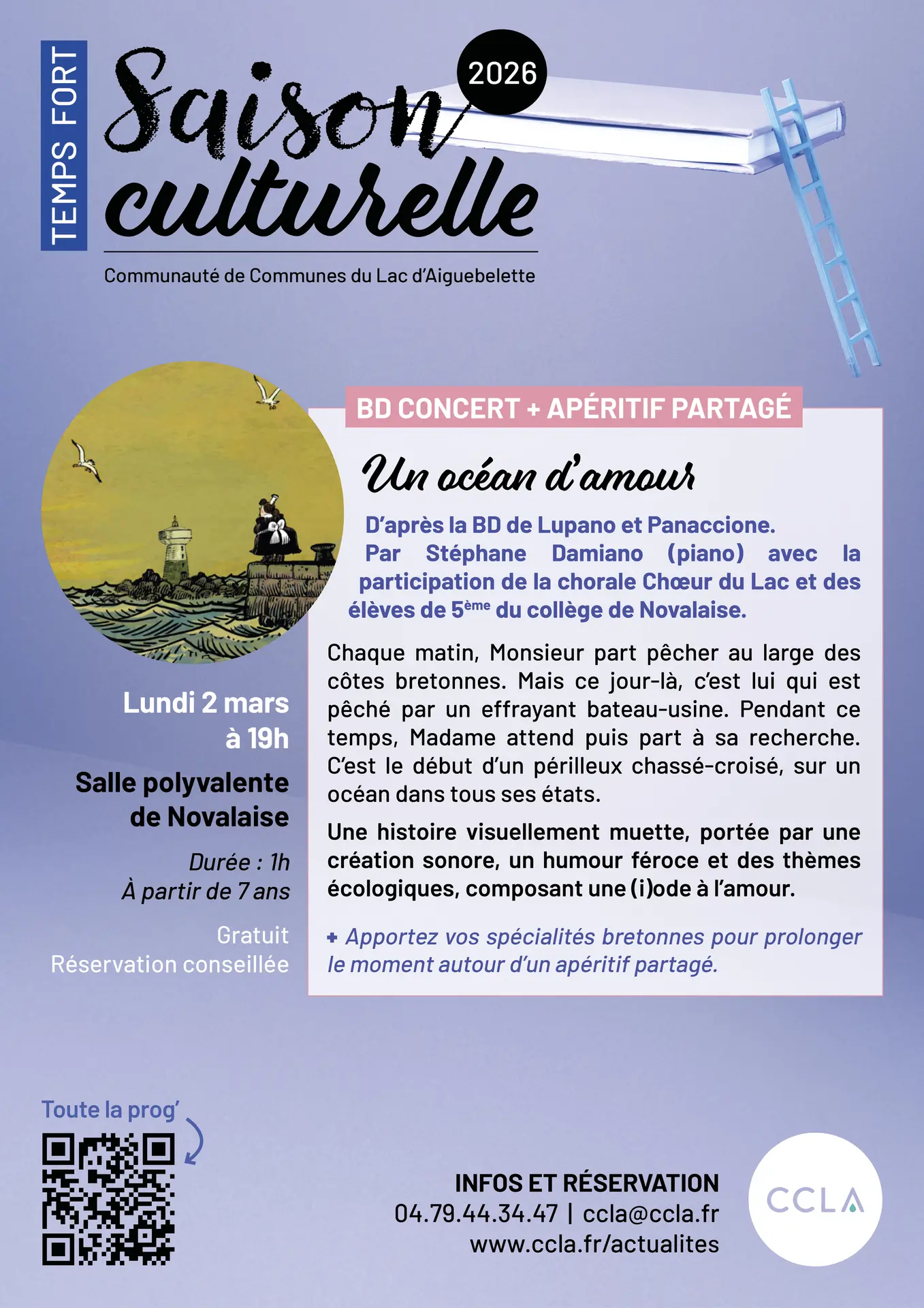 Accompagnement musical en direct des illustrations de la bande-dessinée de Lupano et Panaccione. Par Stéphane Damiano (piano) avec la participation de la chorale Chœur du Lac et des élèves de 5e du collège de Novalaise.