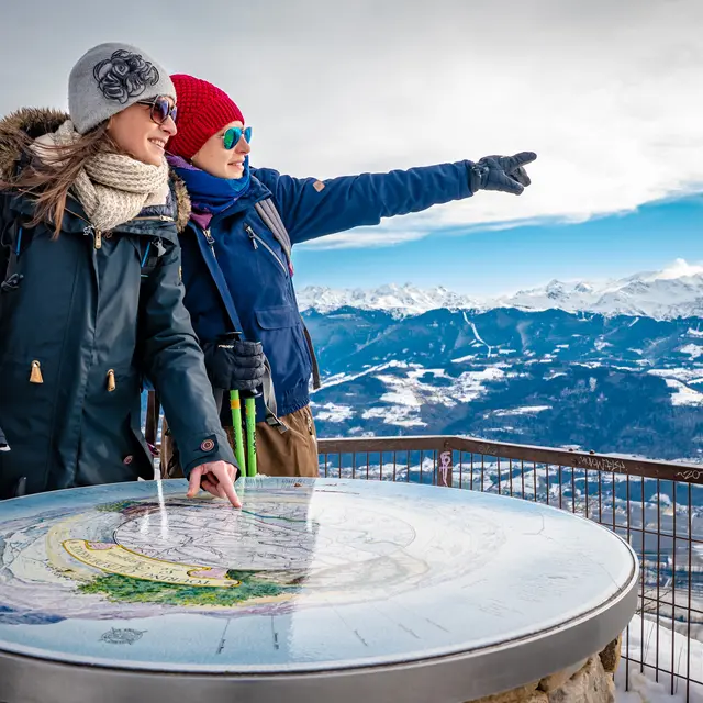(3) Poursuivre jusqu’à la table d’orientation d’où vous aurez une vue imprenable sur la Vallée du Grésivaudan et les sommets de Belledonne.