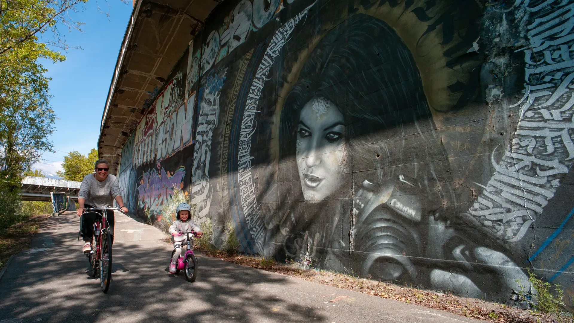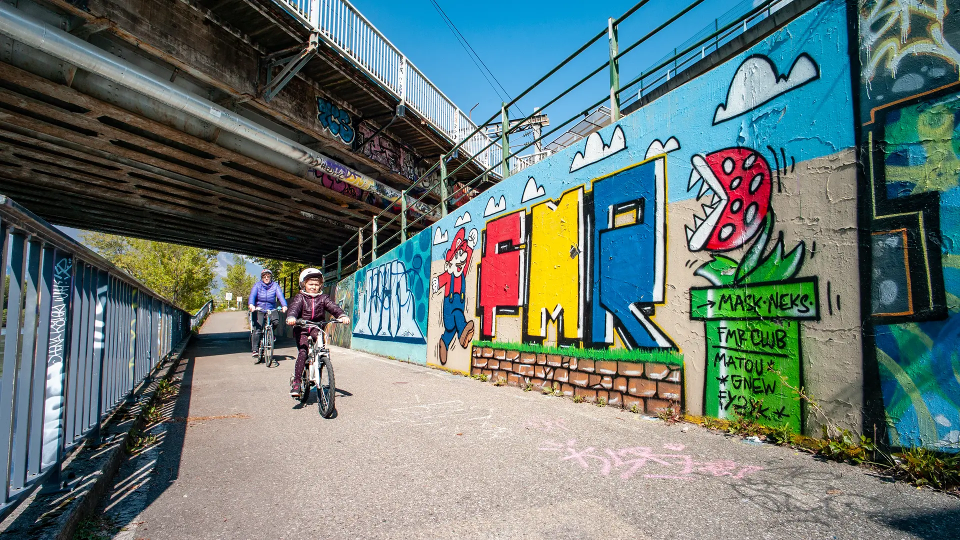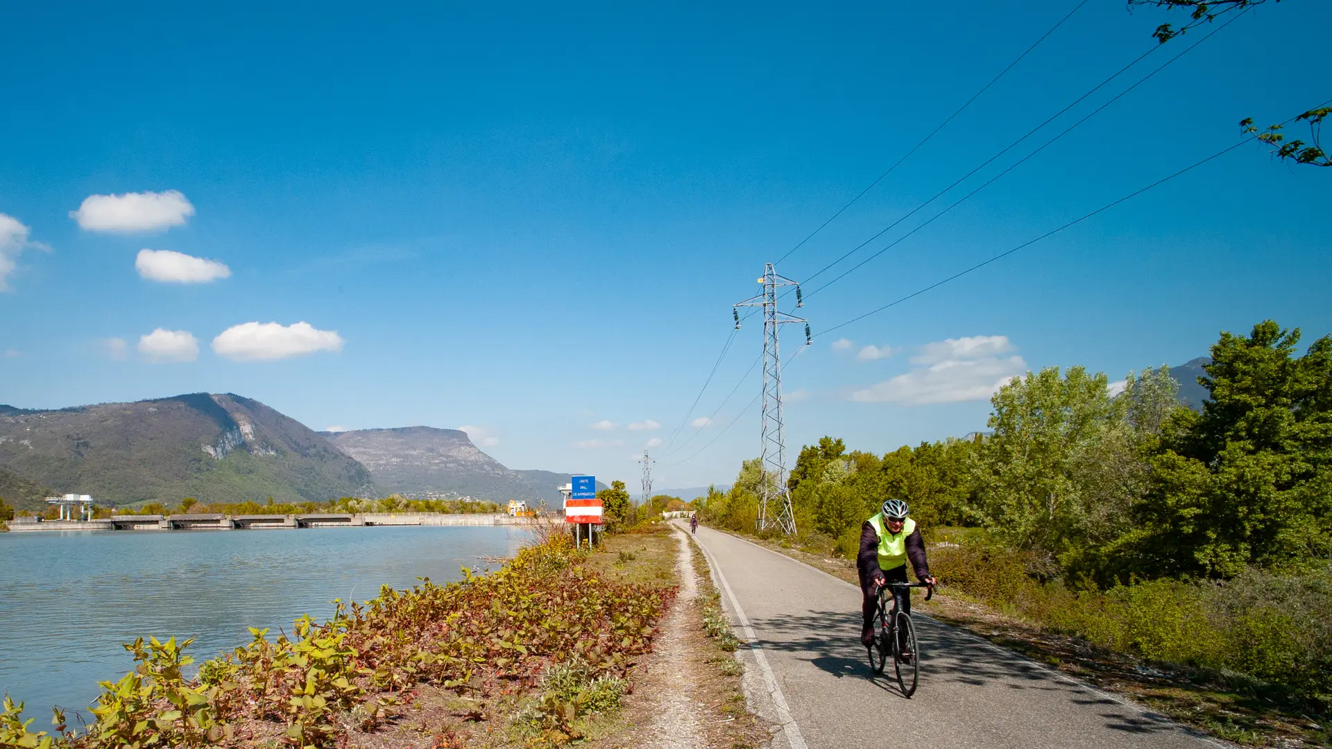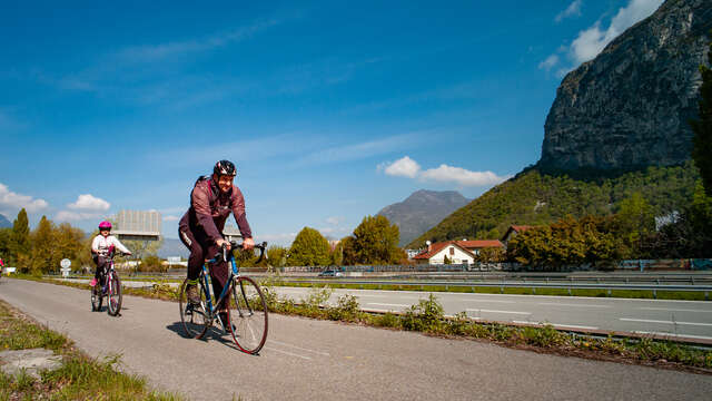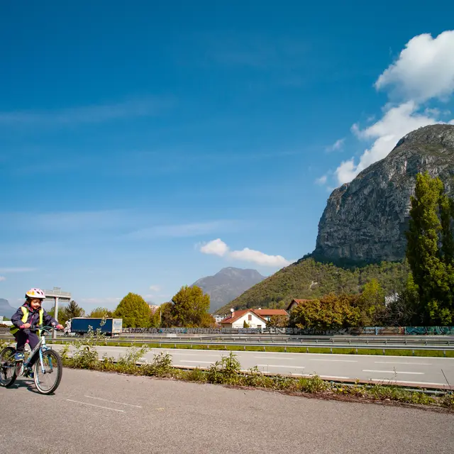 Poursuivez sur la piste cyclable qui vous permet de passer sous la N481. Gagnez ensuite la voie verte des berges, sur laquelle vous tournez à droite, pour suivre le cours de l’Isère sur plus de 5km.