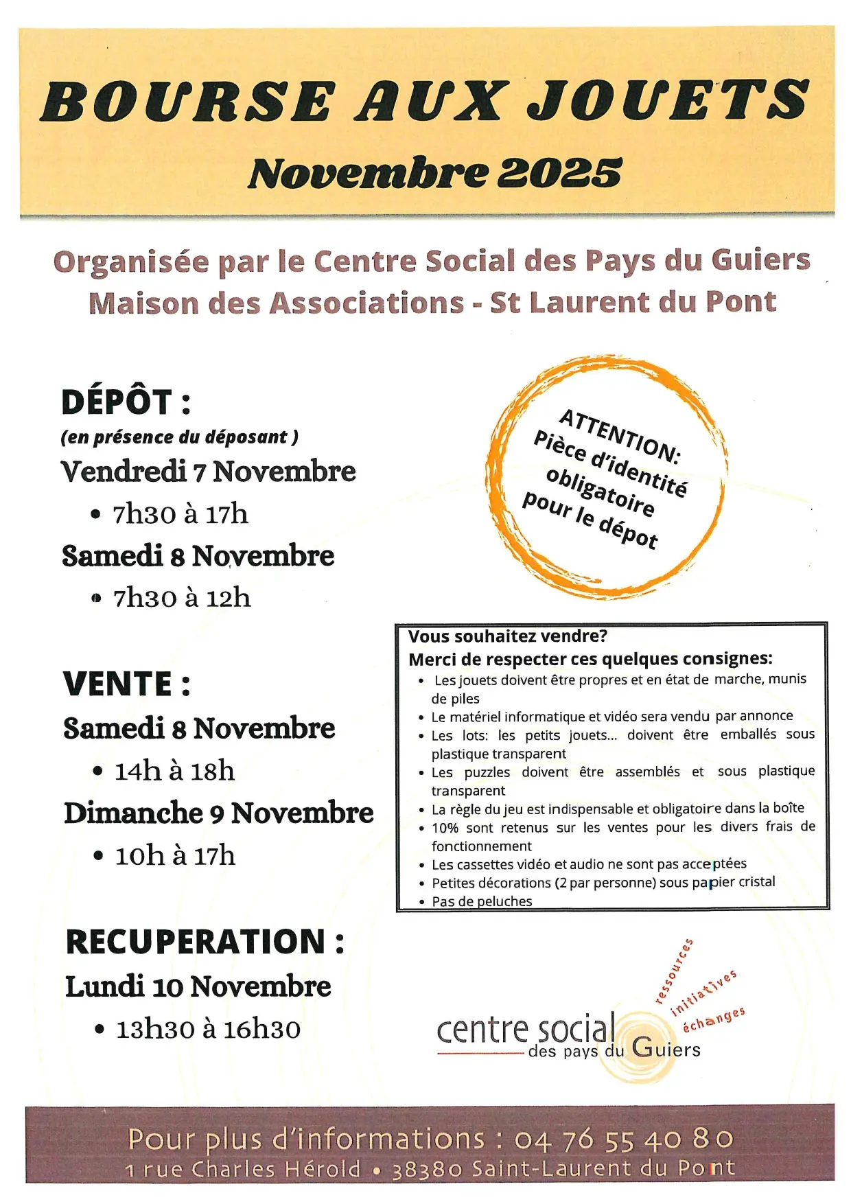 Dépôt : vendredi 7/11 de 7h30 à 17h et samedi 8 de 7h30 à 12h.