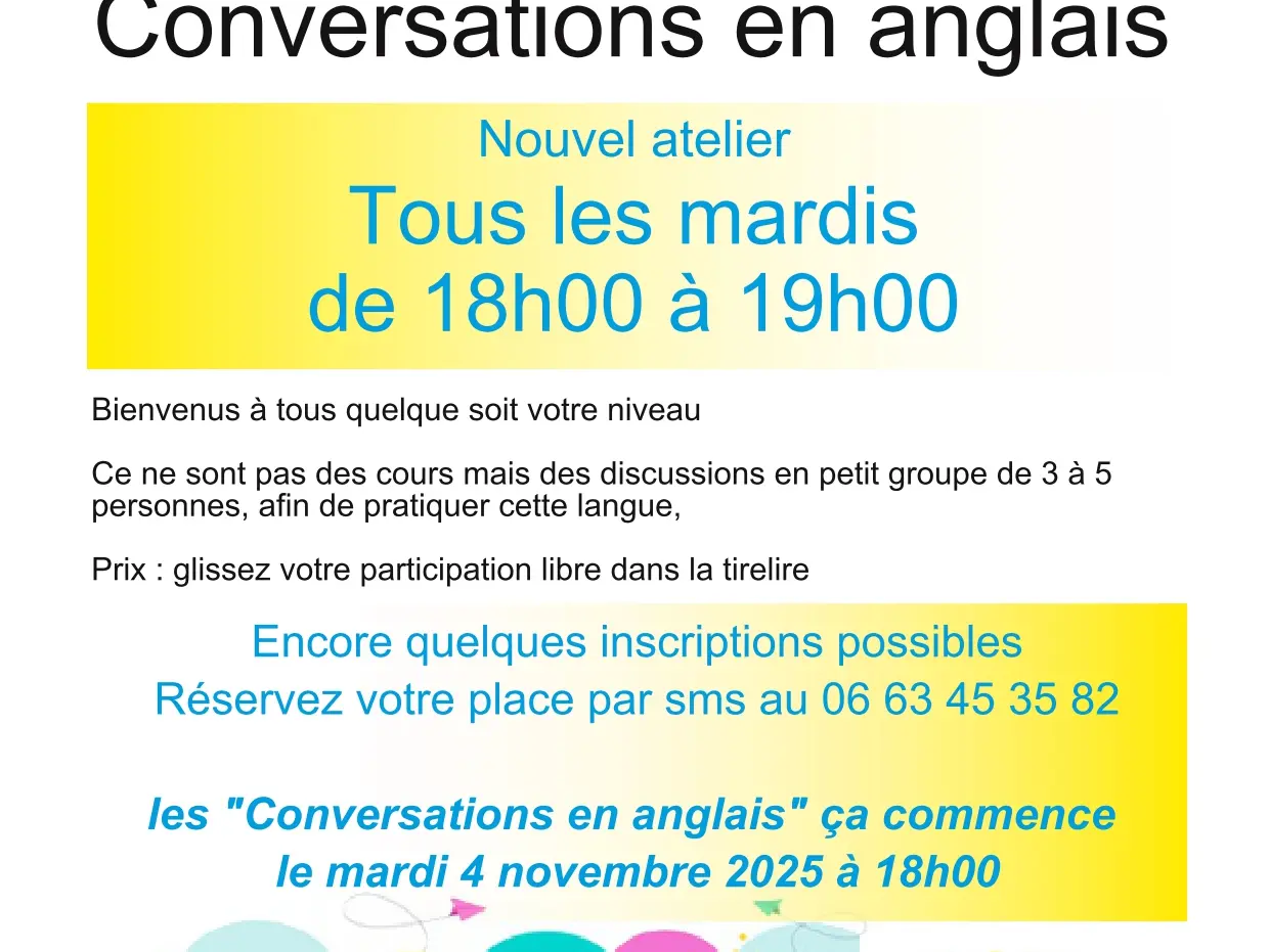 Bienvenus à tous, quelque soit votre niveau ! Ce ne sont pas des cours mais des discussions en petit groupe de 3 à 5 personnes, afin de pratiquer cette langue.