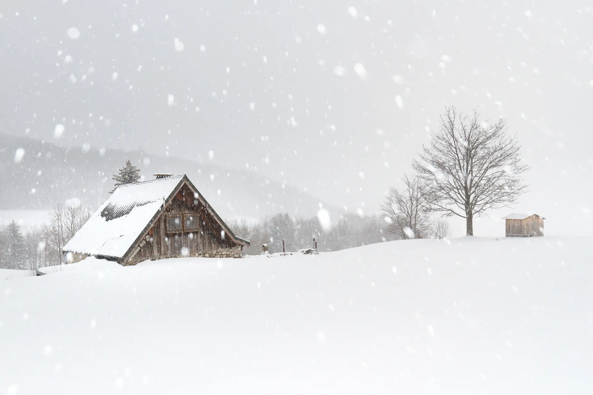 Arbres et granges discrètes en chemin. L’hiver sème sa magie blanche. Loin des sommets, rien de fabuleux ici pour attirer le regard. Banalité? il faut du temps pour regarder autrement, du temps pour laisser venir à soi le langage discret de la simplicité.