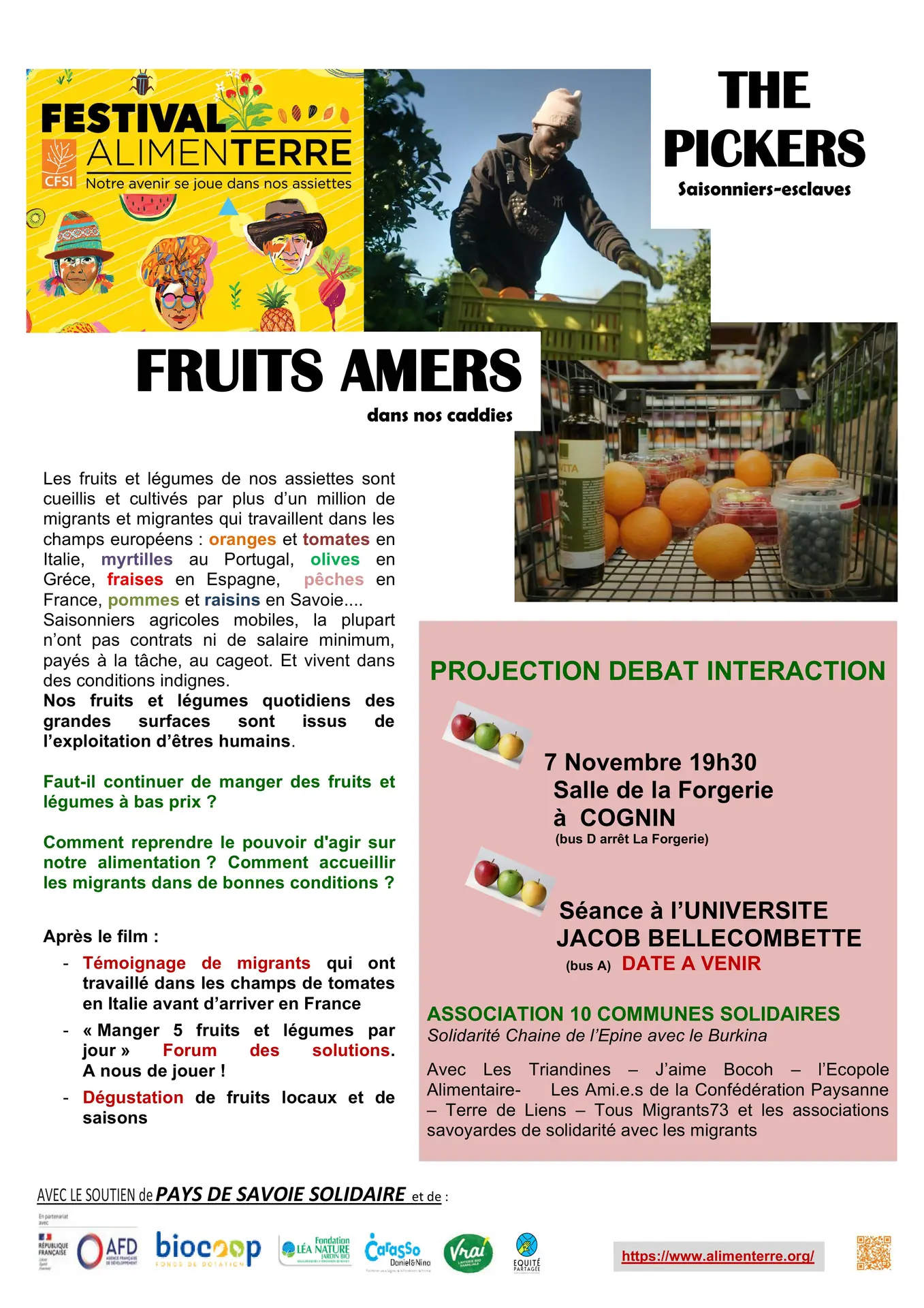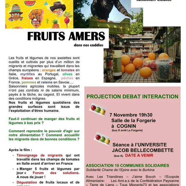 La projection du film sera suivi d'un échange avec le témoignage de migrants et une dégustation de fruits locaux et de saison.
