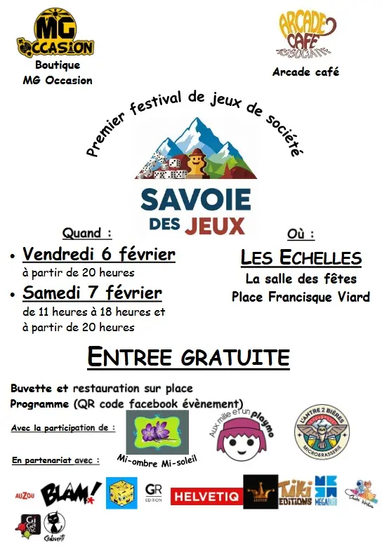 1er Festival de jeux de sociétés des Échelles ! Sur place, buvette et restauration.