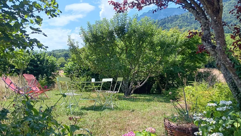 Situé à 600 m d'altitude, dans un petit hameau sur les hauteurs de Chapareillan, au pied du Mont Granier (col à 8 km), aménagé de plain-pied au RDC de la maison, avec une entrée indépendante, studio 35 m², capacité max. 4 pers.