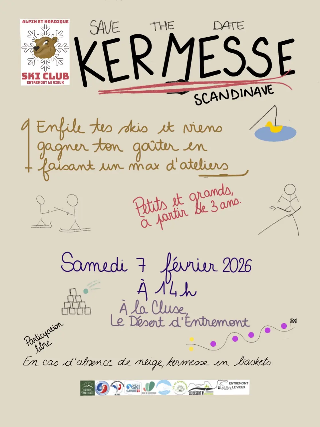 Le Ski Nordique Chartreuse organise sa kermesse scandinave : skis aux pieds s'il y a de la neige ou en baskets si elle vient à manquer, participe à un max d'ateliers et gagne ton goûter ! Ouvert à tous.