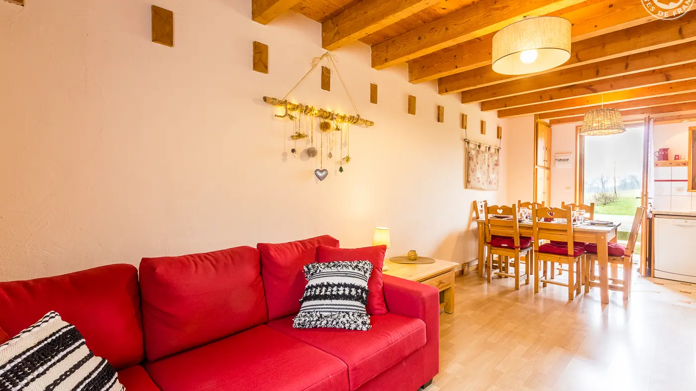 2 gîtes dans la maison des propriétaires (en mitoyenneté). Gite sur 2 niveaux avec un accès indépendant. Rez-de-chaussée : séjour-cuisine équipée, coin salon, connexion Wifi. 1er étage : 2 chambres (1 lit 2 personnes 160 x 200 cm / 4 lits 1 personne 90 x 190 cm) avec salle d'eau privative chacune (douche et WC). Les draps et linge de toilette sont inclus et les lits sont préparés pour votre arrivée. Terrasse privative avec un salon de jardin. Terrain commun. Ski Saint-Pierre-de-Chartreuse/le Planolet 25 km, le Granier 26 km, le Désert d'Entremont 29 km. Ski de fond la Ruchère 18 km. Lac d'Aiguebelette 7 km (baignade et autres activités lacustres). Piscine 9 km.