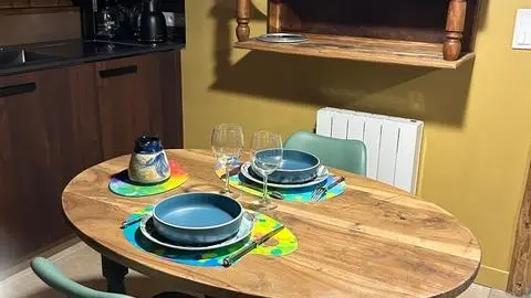 Le gîte est aménagé sur 2 niveaux, à proximité de la maison des propriétaires. Au rez de chaussée la pièce de vie: un salon, une cuisine