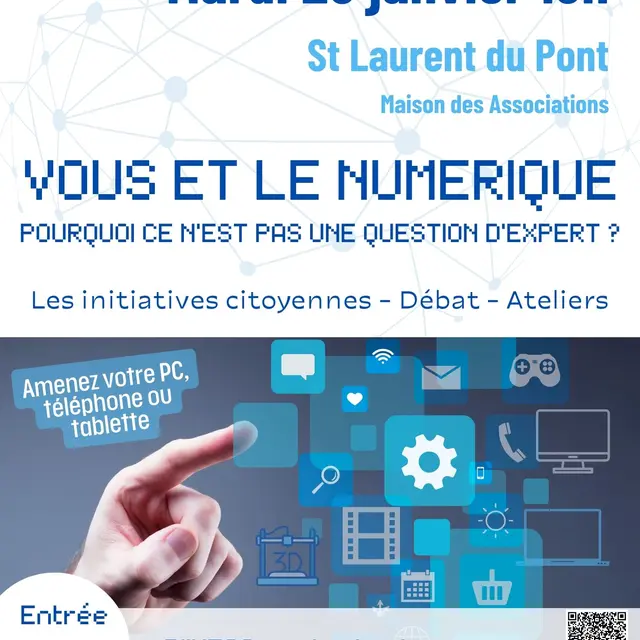Dans le cadre de Particip’action, nous organisons une soirée autour du numérique le mardi 20 janvier 2026 à 18h à St Laurent du Pont (Maison des associations).