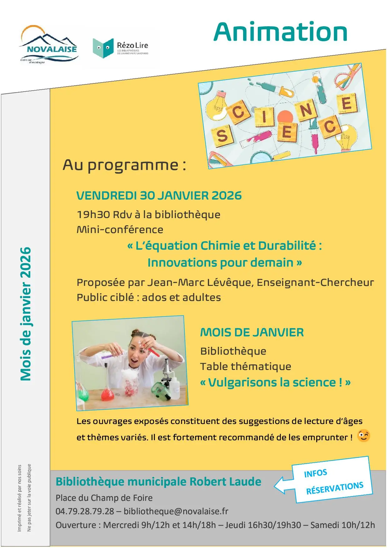 Informations et réservations auprès de la bibliothèque.