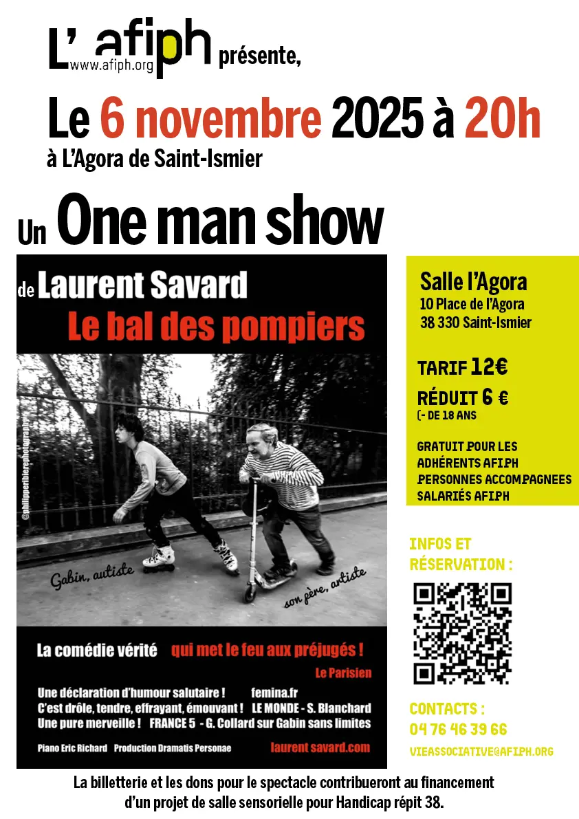 Cette année l'Afiph propose un One-man-show intitulé "le bal des pompiers" qui évoque le parcours du père d'un enfant autiste sur le ton de l'humour.
