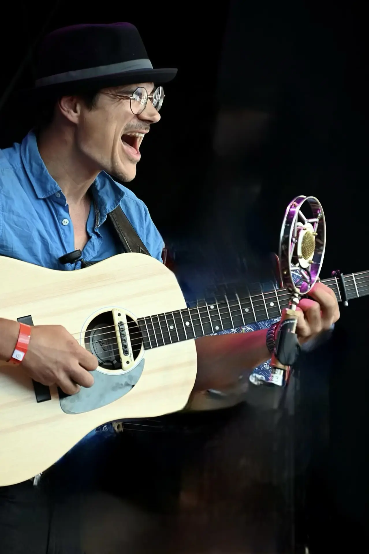 Johnny Sunshine en solo c’est une voix, une guitare, un looper et des histoires de voyages., il raconte la route à travers ses chansons, entre musiques traditionnelles et vieux swing de la New Orleans.