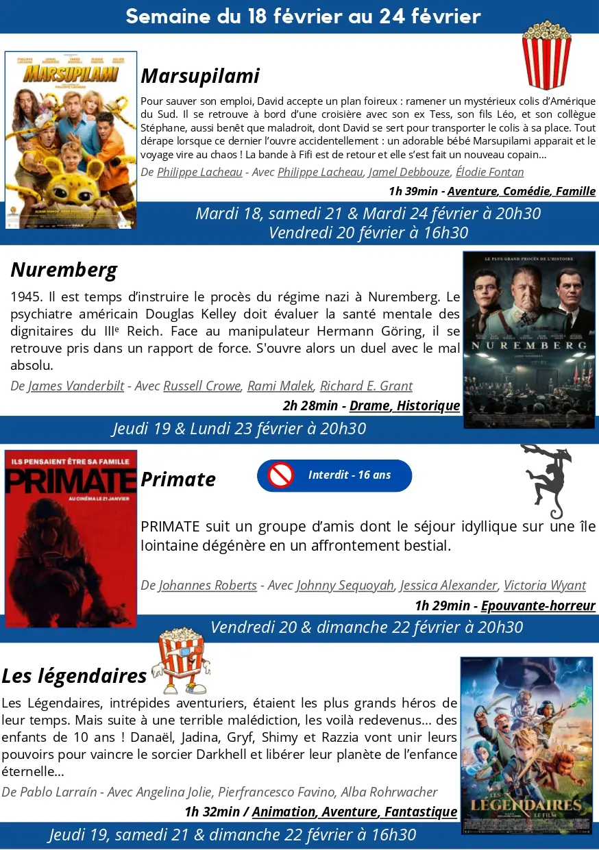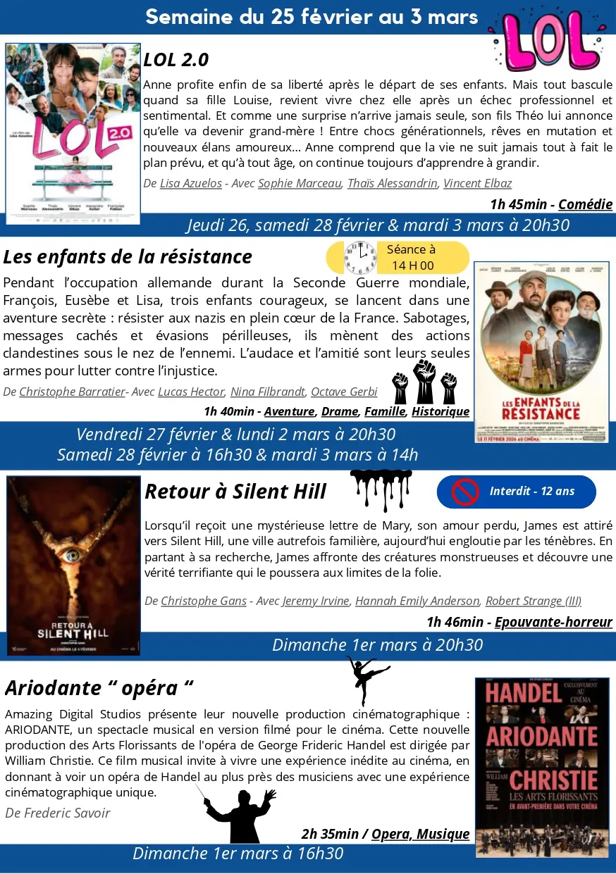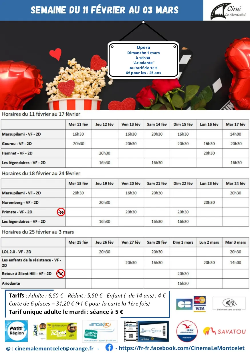 Programme du cinéma Le Montcelet du 11 février au 3 mars 2026