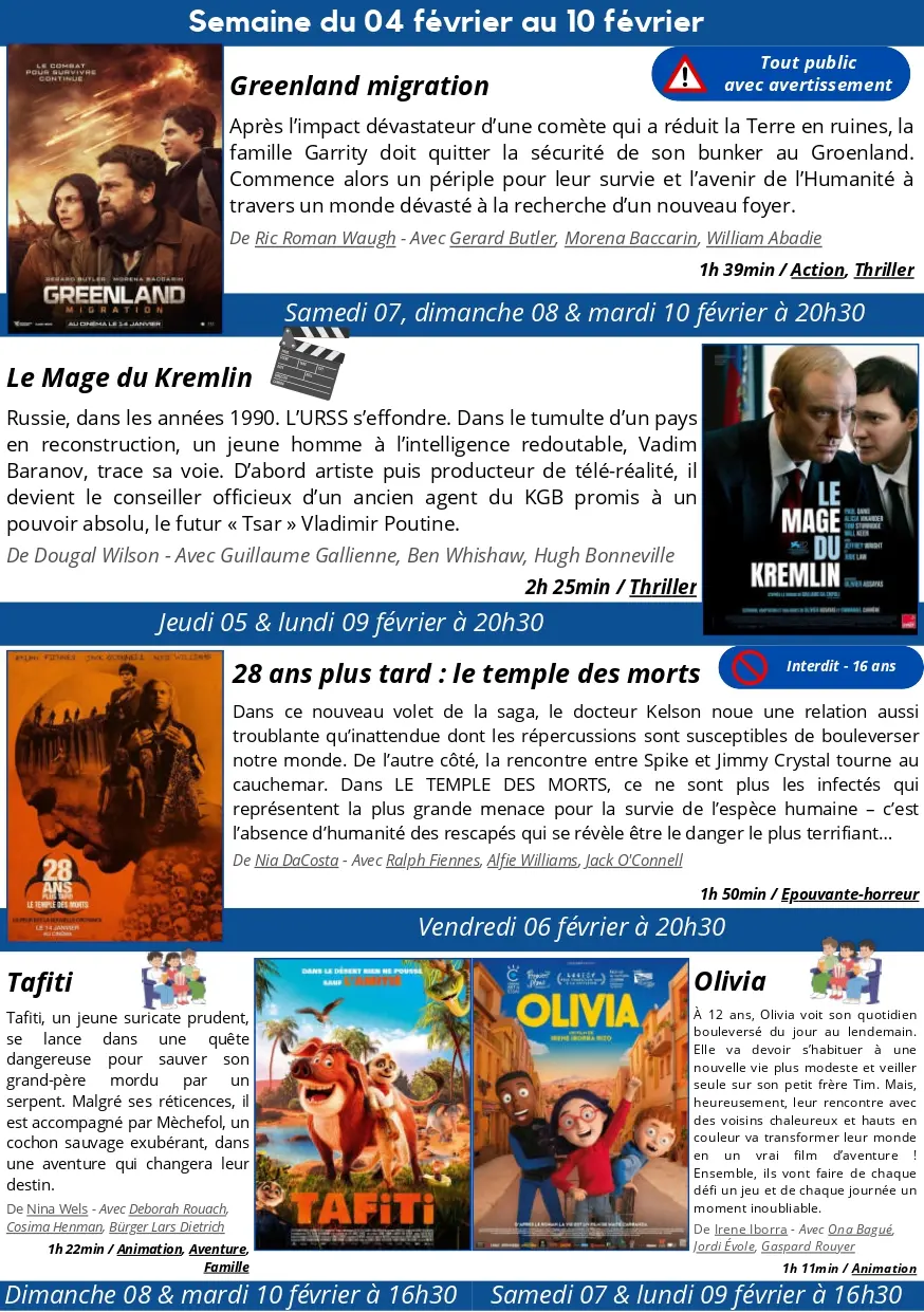 Programme du cinéma Le Montcelet du 21 janvier au 10 février