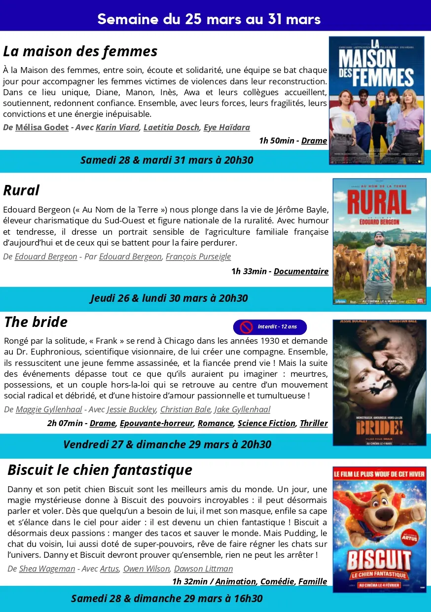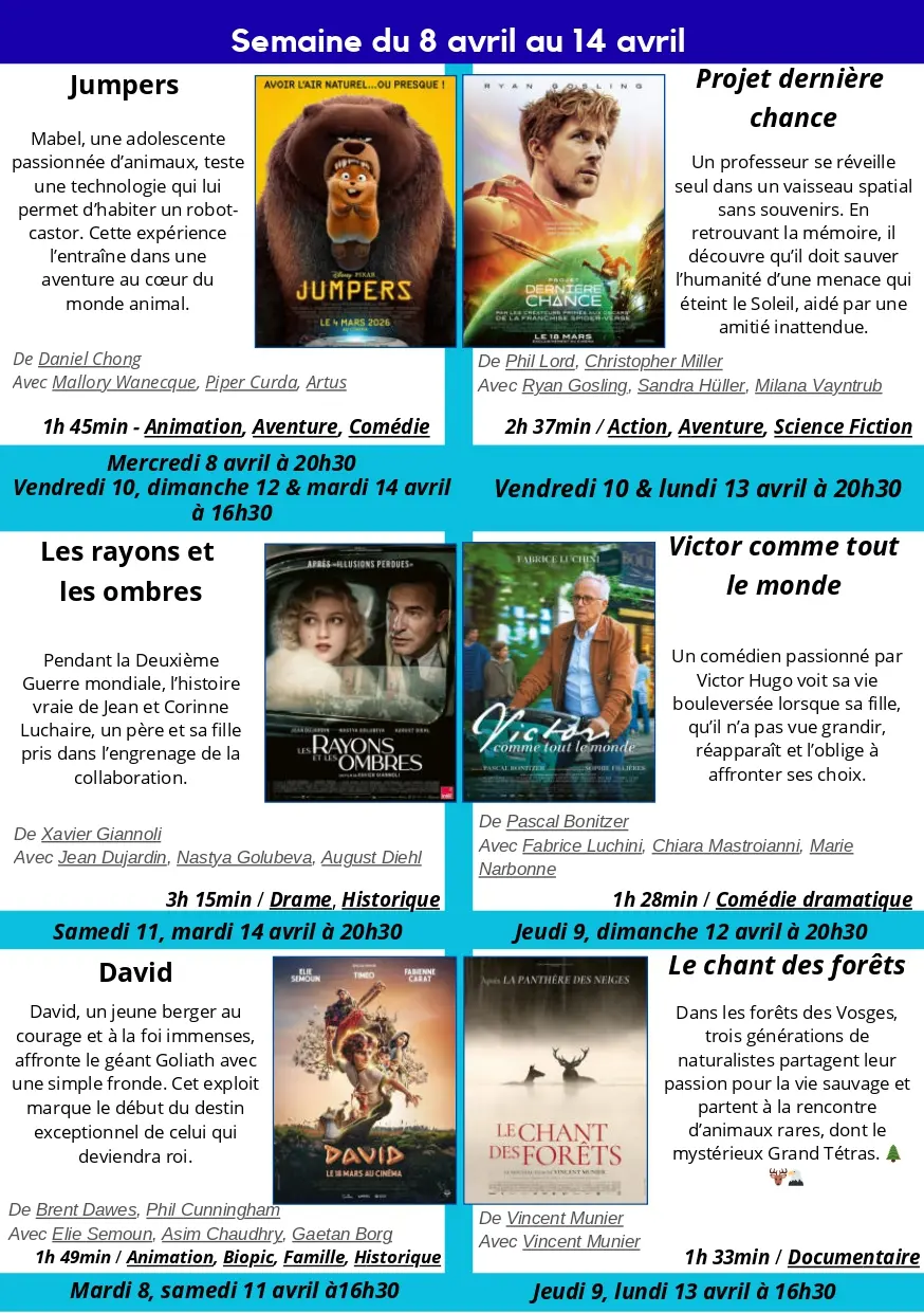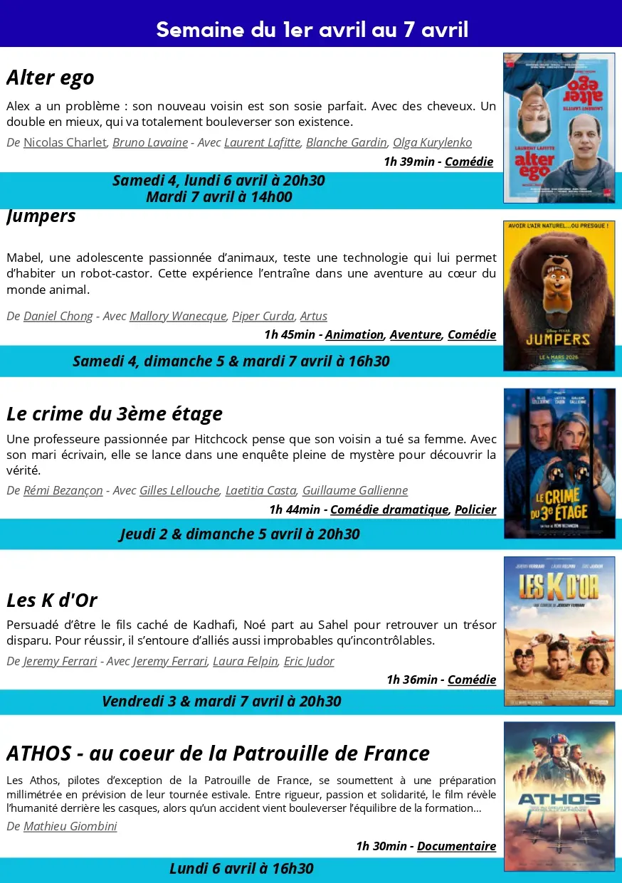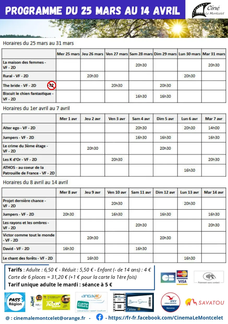 Programme du cinéma Le Montcelet du 24 mars au 14 avril 2026