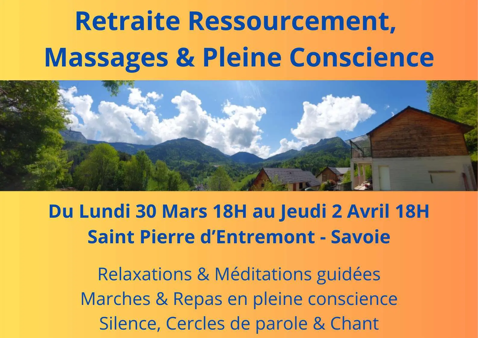 Céline Decoster vous propose 3 jours de ressourcement avec au programme : relaxation et méditations guidées, marches et repas pleine conscience, chants, cercles de parole et silence ainsi que 2 massages de 30 min par personne et 1 de 1h.