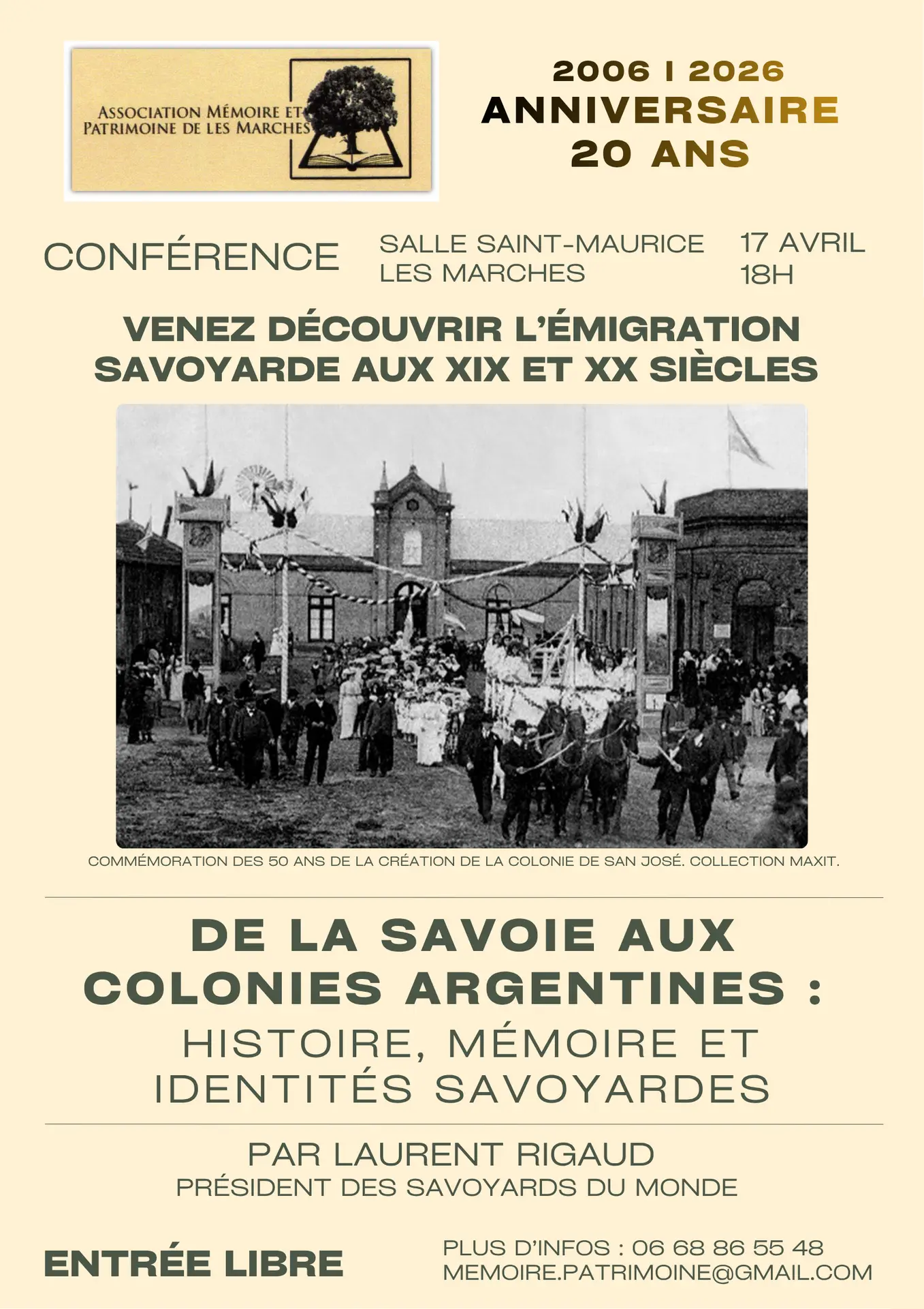 Conférence historique "De la Savoie aux colonies argentines : histoire, mémoire et identités savoyardes" par Laurent Rigaud, président de l'association Les Savoyards du monde.