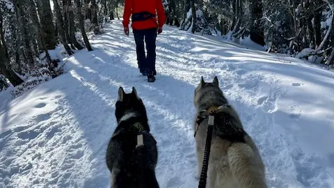 Encadrée par un accompagnateur, cette activité devient une expérience équilibrée, sécurisée et très ludique. On apprend à communiquer avec le chien, à gérer la traction, à progresser sur les différents terrains, tout en respectant ses besoins et son bien-être. Les huskies décuplent la motivation et donnent accès à une manière différente d'avancer en montagne : vive, fluide, complice. Une activité parfaite pour les familles, les sportifs ou toute personne souhaitant vivre la montagne autrement, accompagné par deux partenaires exceptionnels.