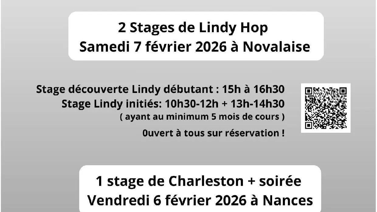 10 h 30 à 12 h + 13 h à 14 h 30 : stage initié (danseurs ayant au minimum 5 mois de cours de Lindy)