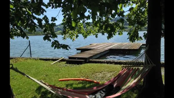 Idéalement situé au bord du splendide « Lac Bleu », ce gîte d’exception offre un accès privilégié à un ponton privé ainsi qu’à une plage de galets paisible, invitant à la détente et aux moments hors du temps. À quelques pas seulement, vous pourrez profiter d’activités raffinées et sportives telles que l’aviron au Club du Lac Bleu, les randonnées VTT ou encore de superbes sentiers balisés pour des promenades en pleine nature.