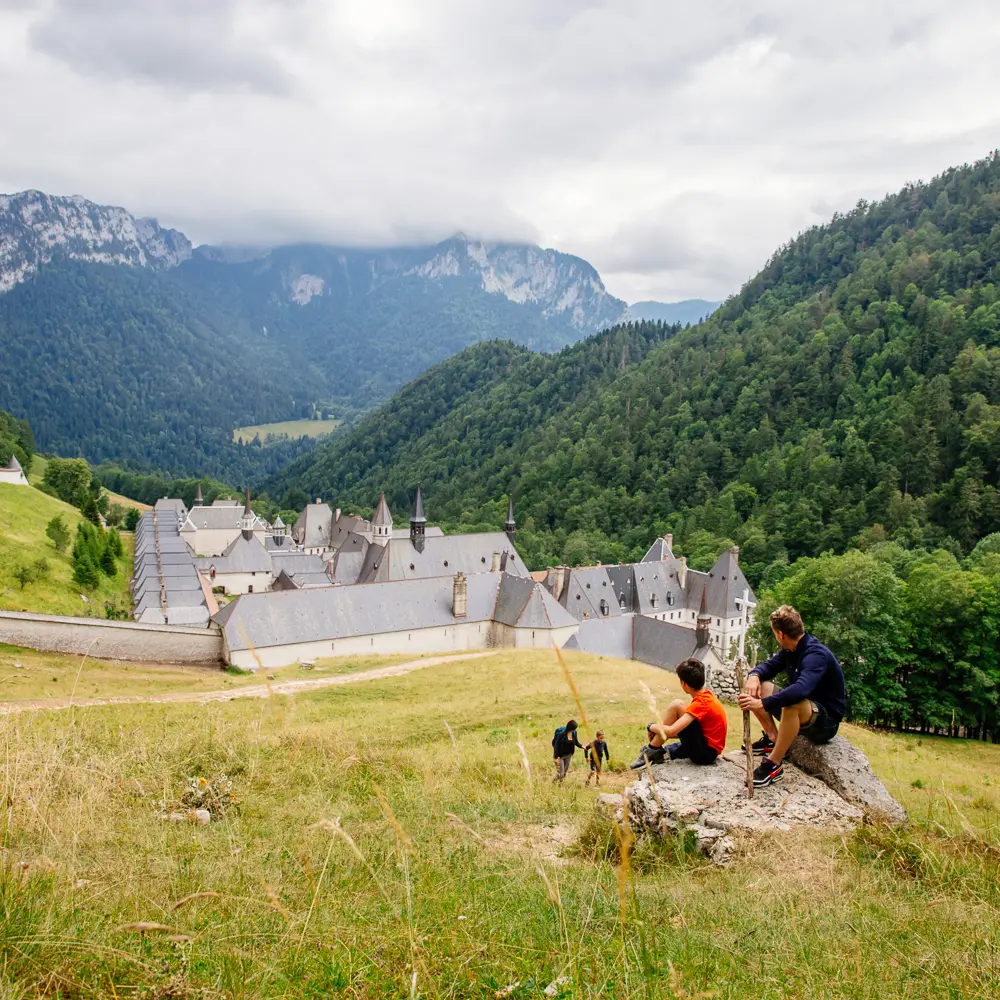 L’itinéraire pénètre ensuite la zone de silence. En descendant vers la Combe Bachais, un panorama s’ouvre sur le Monastère de la Grande Chartreuse, avant de rejoindre la Correrie, ancien lieu de vie des frères chartreux.