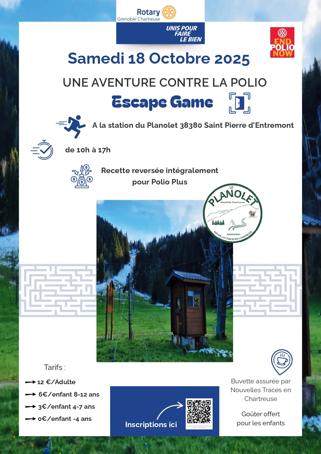Escape Game caritatif en extérieur : Résolvez 8 énigmes via smartphone, baladez-vous en famille et soutenez l’éradication de la polio. Buvette sur place, goûter offert aux enfants « Super-Héros ».