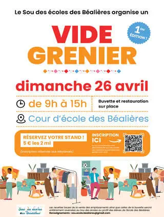 Le sou des écoles des Béalières organise son 1er vide grenier le dimanche 26 avril dans la Cour d'école des Béalières.